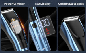 • Features :2 Adjustable Lengths,USB Rechargeable,Large Capacity,Low Noise,Heavy-Duty Motor,High Power,LED Display,Travel Lock,Three Self-Sharpen Close Shave Blade