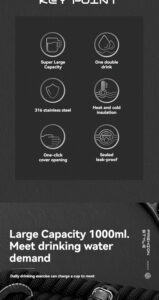1.316 stainless steel, corrosion resistance, material safety, BPA-free, no odour. 3.